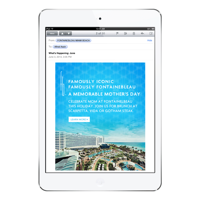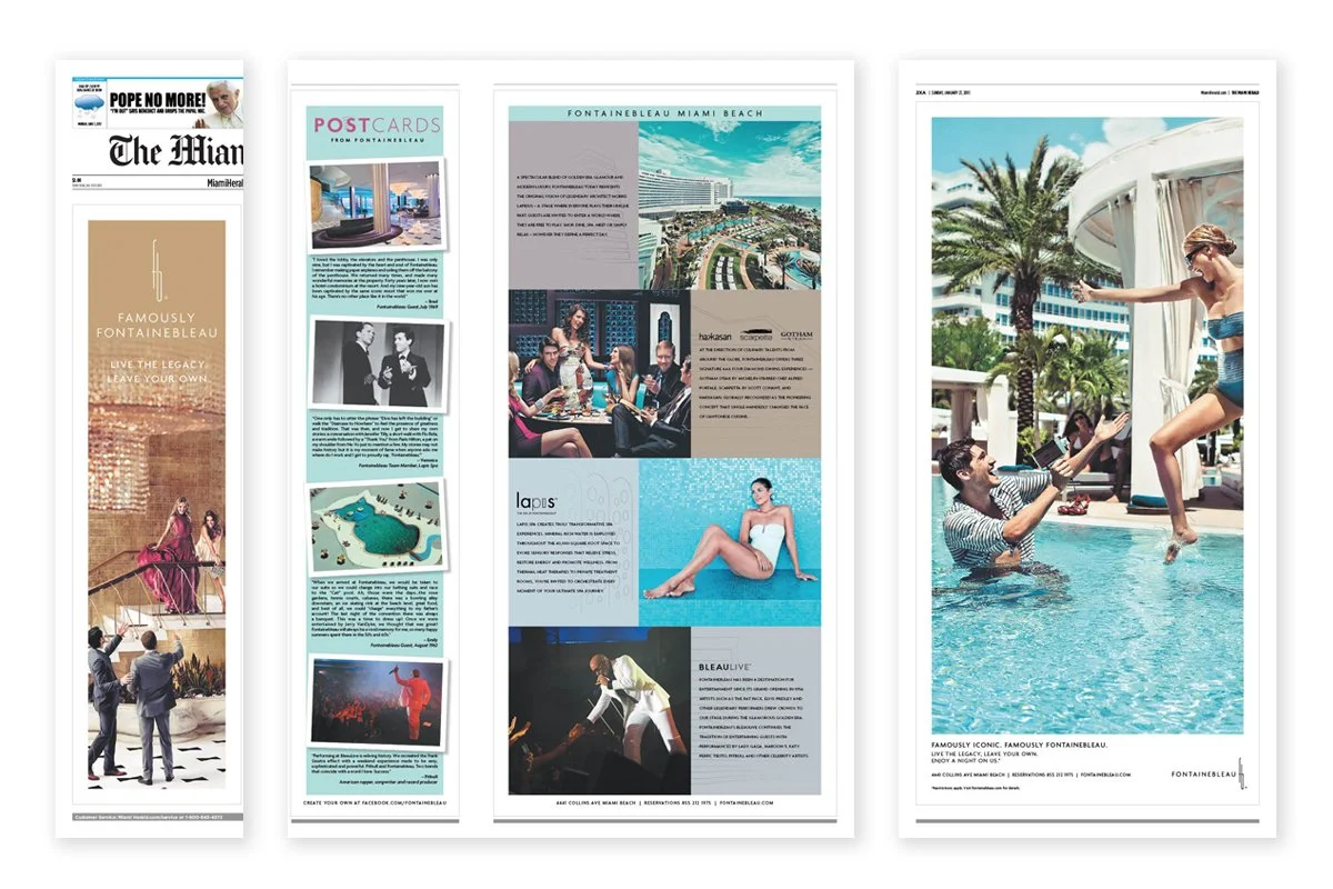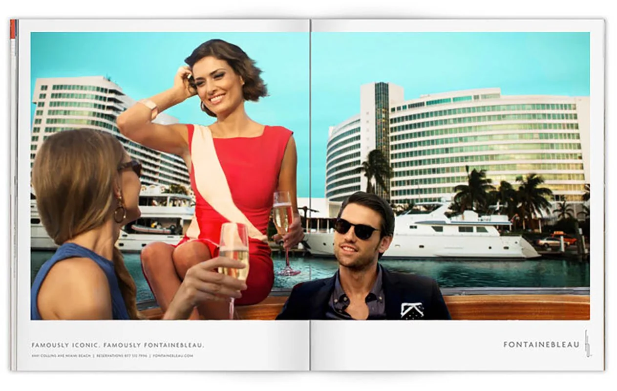 When asked to pitch the legendary Fontainebleau Hotel in Miami—a playground for icons like Sinatra and Elvis—we knew the campaign had to honor its storied past while still feel fresh and timeless. Inspired by the photography of Slim Aarons, who captured “beautiful people doing beautiful things,” we created Famously Fontainebleau—a campaign that blended vintage glamour with modern allure. It won the business, then brought the brand back to life.